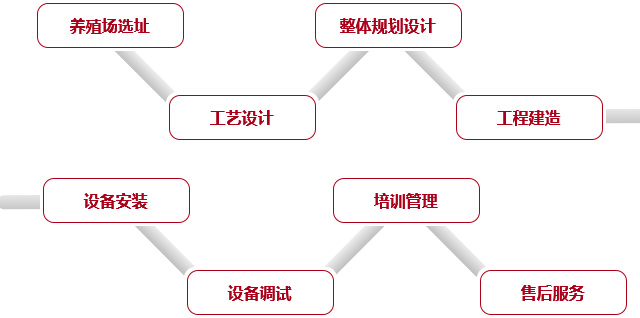 為客戶提供從養(yǎng)殖場選址、規(guī)劃設(shè)計、工程施工、設(shè)備安裝到后期培訓(xùn)維護等解決方案,周到細致的為客戶打造出具備國際先進水平及高性價比的現(xiàn)代化養(yǎng)殖場, 打造精品“交鑰匙”工程。根據(jù)不同區(qū)域的自然環(huán)境條件及客戶投資需求,因地制宜地采用適宜的生產(chǎn)工藝及流程布局,是養(yǎng)殖場生物安全、生產(chǎn)高效的根本。
